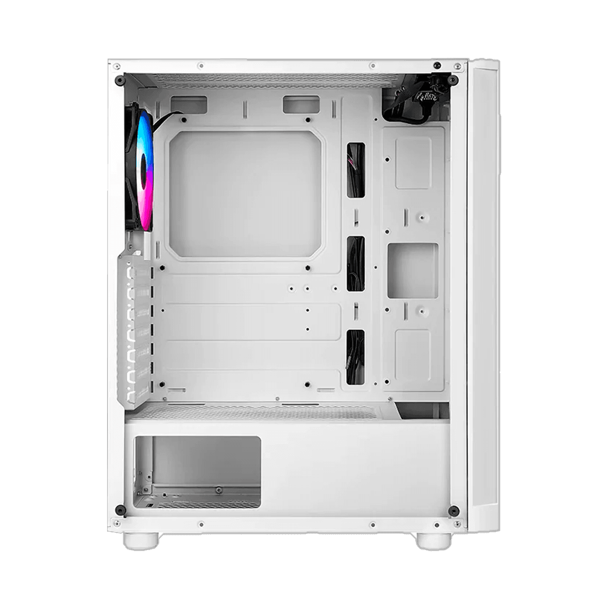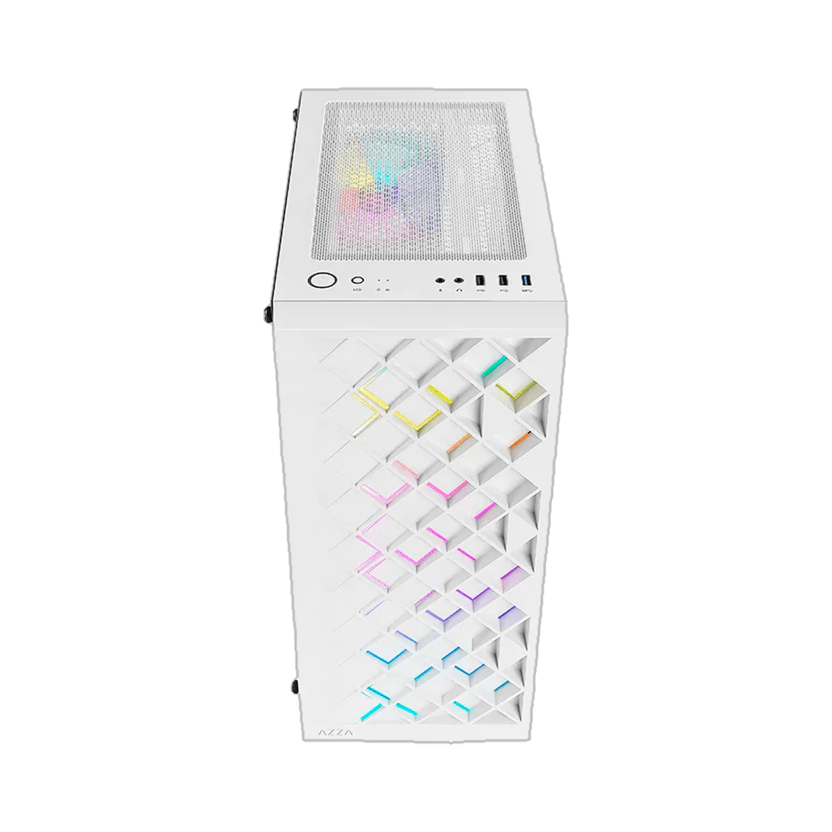 El AZZA Spectra 280W destaca por su panel frontal con un patrón de rejilla transpirable que no solo mejora la entrada de aire, sino que crea un efecto visual único al combinarse con la iluminación ARGB interna. Este modelo en color blanco es ideal para quienes desean un ensamble con estética "Snow" o minimalista, permitiendo que las luces LED resalten con mayor intensidad. Viene equipado con un panel lateral de vidrio templado de alta calidad, que ofrece una vista panorámica de los componentes y facilita el acceso al interior. Su estructura interna es espaciosa, permitiendo la instalación de tarjetas gráficas de gran tamaño y múltiples opciones de almacenamiento. Con una conectividad frontal completa y un diseño que prioriza el flujo de aire masivo, el Spectra 280W es una excelente opción para equilibrar estilo y rendimiento térmico en una Mid Tower moderna.