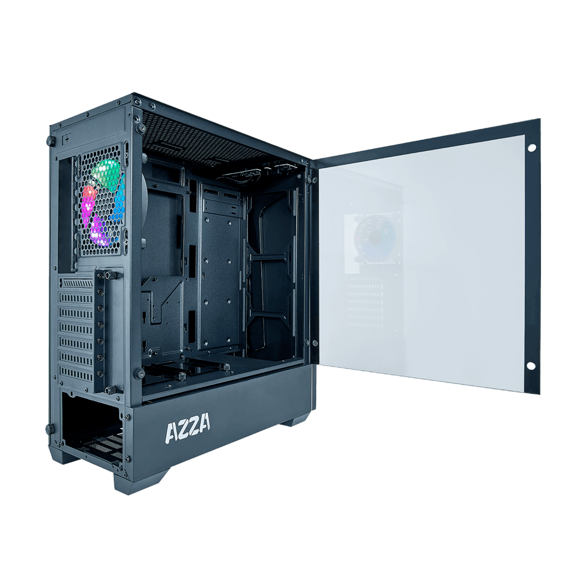 El AZZA Apollo 430B destaca por su panel frontal distintivo, que presenta una elegante tira de iluminación ARGB cruzada sobre un acabado metálico cepillado, otorgándole una apariencia moderna y premium. Este modelo está diseñado para ofrecer un equilibrio perfecto entre exhibición y funcionalidad, incorporando un panel lateral de vidrio templado de alta calidad que permite apreciar el hardware interno con total claridad. Viene equipado de fábrica con 2 ventiladores ARGB que aseguran un flujo de aire constante y una estética vibrante desde el primer encendido. Su estructura Mid Tower es notablemente versátil, permitiendo la instalación de tarjetas gráficas de gran tamaño y ofreciendo soporte para diversas configuraciones de refrigeración líquida. Con una gestión de cables optimizada y filtros de polvo de fácil mantenimiento, el Apollo 430B es una opción excepcional para ensambles que buscan destacar por su elegancia y rendimiento térmico.